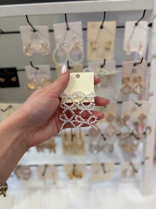 3 Pearl Bow Dangle Earrings